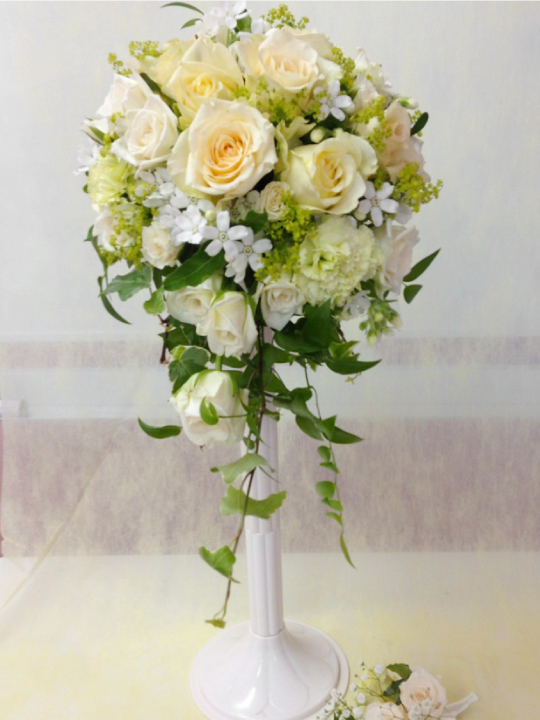 新婦ブーケ・へアドレス・新郎ブートニア・御両親への花束・チャイルドブーケ・トーチ花・テーブル花・受付花・ウェルカムボードなど、お二人の個性とご予算に合わせてお作り致します。
